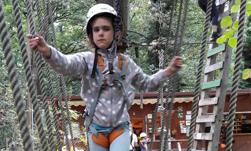 Guck mal hier: https://www.waldseilpark-karlsruhe.de/ Da gehts heute hin. Ich freue mich schon riesig 😂. Ich darf aber nur auf den „Anfängerparcour“. Na gut, besser als nix. Und wenn ich älter bin, dann darf ich auf gaaaanz hohen Bäume…