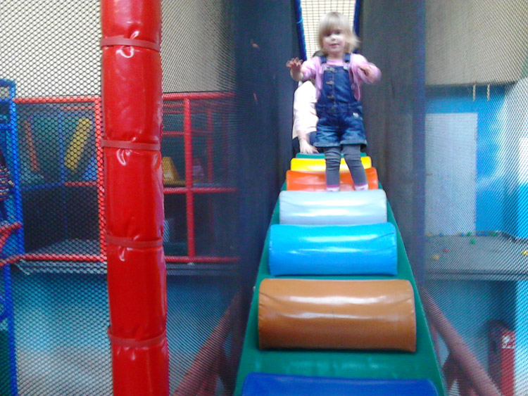 Bevor wie losfahren muss die Puppe gewickelt werden Und auch Grüffelo muss überall hin mit Trampolin springen im Kindorado Quatschmachermama :o) Lila kennt muss überall hoch - und runter... Lila unterwegs im Labyrinth ruschen auf Rollen Lila will unbedingt Zug fahren :o)