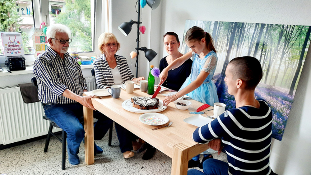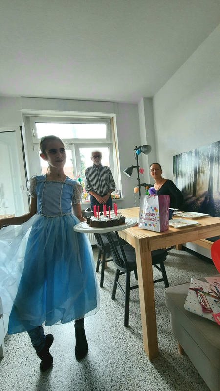 Lilas 9. Geburtstag in der neuen Wohnung mit Mama, Oma Gerti, Opa Winni, Tante Anna und Oma Jutta (die macht grad die Fotos)